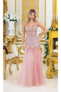May Queen MQ1995 Embroidered Mermaid Corset Bone Formal Plus Size Gown
