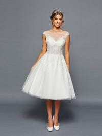 Vestido de novia DeKlaire 460 con corte en A, largo hasta la rodilla y mangas cortasPrecio de oferta$389.00Precio normal$500.00