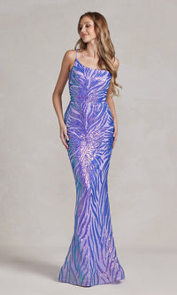 Todas las miradas estarán puestas en ti con este vestido largo de fiesta de lentejuelas de Nox Anabel. Este vestido largo de diseñador, de un solo hombro, luce llamativos patrones de lentejuelas desde el escote asimétrico hasta el suelo, para un look espectacular en bailes de graduación, concursos de belleza y otros eventos formales. Este sexy vestido largo de fiesta tiene una falda larga que se ciñe a las curvas y brilla al caer desde las rodillas hasta el suelo, completando el look. Disponible en tallas grandes y para señoritas, este fabuloso vestido largo de fiesta de lentejuelas cuesta sorprendentemente menos de $250.