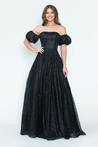 Causa una gran impresión con este encantador vestido Lenovia 8242 de corte A, ideal para eventos formales, graduaciones y noches de gala. Confeccionado en tul brillante con purpurina, este vestido recto presenta románticas mangas abullonadas, un corpiño estructurado y una espalda con cordones para un favorecedor ajuste personalizado. Su silueta amplia de corte A crea un elegante look de princesa, realzado por su deslumbrante tela y su elegante caída. Diseñado para mujeres que aman el glamour atemporal con un toque moderno, este vestido convierte cada momento en una ocasión de alfombra roja.
