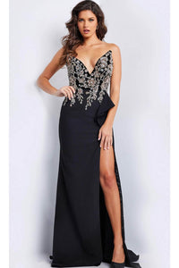Adopte la elegancia atemporal con Jovani 38746, una magnífica creación confeccionada en lujoso satén adornada con exquisitos detalles de tul con cuentas. Esta obra maestra de hombros descubiertos personifica la sofisticación y el glamour con una elegante y ligera cola que le aporta un toque etéreo, complementando el escote en V que irradia un encanto artístico. Con un elegante cierre de cremallera en la espalda, este vestido de noche garantiza una entrada cautivadora e inolvidable, ¡haciendo de Jovani 38746 una elección excepcional para su esperada ocasión especial! La modelo lleva el vestido en negro y marrón. Detalles de la prenda: Hombros descubiertos, Capa larga de satén, Tul con cuentas, Cola ligera, Cremallera trasera