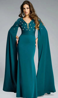 - Long sheath evening dress with cape sleeves
