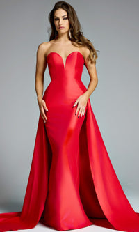 Jovani 44180 - Elegant Strapless Satin Gown with Overskirt