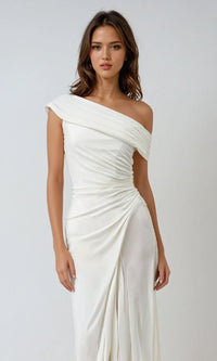 Let’s break it down: The neckline folds over asymmetrically, skimming across your collarbone in that clean, on-purpose way you wish every dress did. The long skirt’s tailored close through the hips, then loosens up as it falls—hello, graceful train. There’s nothing busy about the details, which makes it right for modern brides, minimalist teens, or anyone sidestepping tulle and lace this season. Also, if you care about budget (who doesn't), Amoris keeps things accessible.