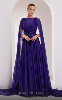 MNM Couture E0061 Coral Pleated Evening Gown with Cape Sleeves