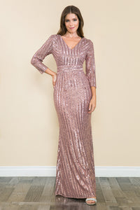 Vestido formal de madre de la novia con lentejuelas, escote en V, mangas 3/4 y largo hasta el suelo, de Lenovia 5247Precio de oferta$159.00