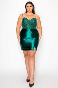 Vestido corto de satén con cuentas y abertura, talla grande, de Poly USA W1178Precio de oferta$230.00