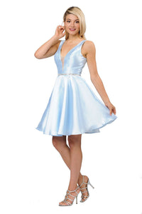 Vestido corto de mikado con escote en V y efecto ilusión de Poly USA 7894Precio de oferta$149.00