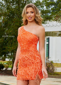 Short One Shoulder Feather Dress by Rachel Allan 40203
