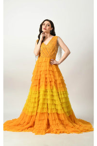Volante amarillo sensual y mangas con flecos CF242503103 de FGPrecio de oferta$647.00