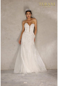 Vestido de corte A con escote en V pronunciado, sin tirantes y bordado - Terani Couture 2111p4055Precio de oferta$781.00