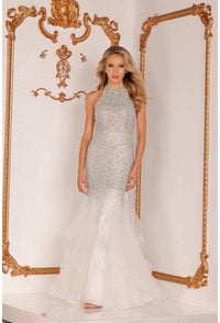 Vestido con cuello halter y cuentas - Terani Couture 2215gl0111Precio de oferta$900.00