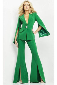 Prepárate para cautivar con el mono de dos piezas Jovani 06922 Couture. Este diseño formal presenta elegantes mangas largas con aberturas y un cuello en V. Los pantalones largos también tienen aberturas laterales para un mayor estilo. Otra impresionante creación de Jovani, como se ve en la modelo en color esmeralda. Detalles de la prenda: Mangas largas, Escote pronunciado, Mono de dos piezas, Mangas con aberturas, Pantalones con aberturas, Largo completo