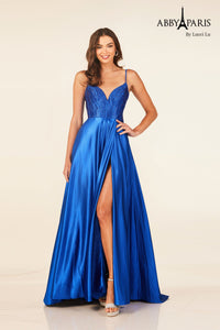 Abby Paris 90300 Heat Stone Sleeveless A-line Slit Gown is available at Formal Dress Shops in the following colors: