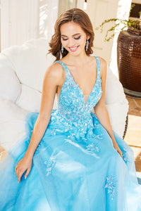 Adora Design 3090 Floral Glitter A-Line Spaghetti Strap Prom Dress