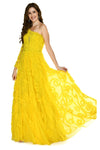 Step into elegance with the Bright One-shoulder Asymmetrical Neckline A-line Prom Dress CF19200132 from Couture Fashion by FG, a masterpiece designed for modern fashionistas seeking a blend of sophistication and glamour. This stunning dress features a unique asymmetrical neckline with delicate illusion detailing, adding a contemporary twist to classic prom elegance. The fitted bodice is adorned with intricate embroidery, enhancing its luxurious appeal while providing a flattering silhouette. Crafted with soft and comfortable fabric, the dress ensures ease of movement while maintaining its high-fashion charm. Flowing gracefully from the waistline, the A-line skirt showcases wide embroidered patterns and a structured mesh horsehair hemline, giving it volume and a dramatic presence perfect for proms, evening events, or special occasions. Its vibrant bright tone ensures you make a lasting impression, while the thoughtfully designed details highlight both style and elegance. Ideal for trend-conscious individuals, this one-shoulder prom dress combines contemporary design with classic couture elements, making it a must-have for your formal wardrobe. Pair it with minimal accessories and heels to complete a striking look that turns heads at every event. With its impeccable craftsmanship and attention to detail, this dress by Couture Fashion by FG elevates your formalwear game, promising a memorable and elegant appearance.