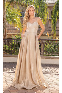 Step into the spotlight with the Dancing Queen Dresses DQ-2611 Long Gold Prom Dress, a breathtaking blend of timeless elegance and modern sophistication. This radiant gown is crafted to make every moment unforgettable with its shimmering gold fabric that glows under any light. The lace-up back design ensures a perfectly tailored fit, enhancing your natural curves while adding a chic and alluring touch. The floor-length flowing skirt moves gracefully with every step, creating a picture-perfect silhouette ideal for formal occasions. Designed for fashion-forward women who love to stand out, this gold evening gown captures the essence of luxury and glamour. Whether you’re attending prom, a gala, or a red-carpet event, this dress guarantees confidence, elegance, and sophistication. The exquisite detailing and flawless craftsmanship make it a must-have choice for those seeking a show-stopping look.