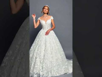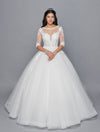 DeKlaire 421 A-Line Wedding Dress with Illusion Boat Neckline, Mid Sleeves & Beaded Lace Sale price$799.00