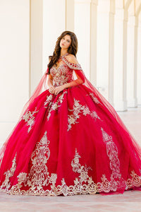 Embroidered Applique Cape Ball Gown by Bella Princess PQ1016