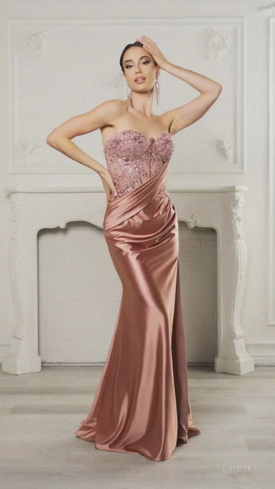 Evening Dress Sweetheart High Side Slit Gala Gown By May Queen MQ2152 - ROSE GOLD / 4 - Dress
