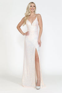 Poly USA 8720 Fitted Long Sequin Dress with Slit