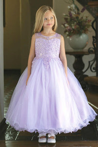 Flower Girl Dress Sleeveless Tulle A-line Skirt with Lace Appliqué Formal Kids Party Dress By AG5241 Sale price$119.00