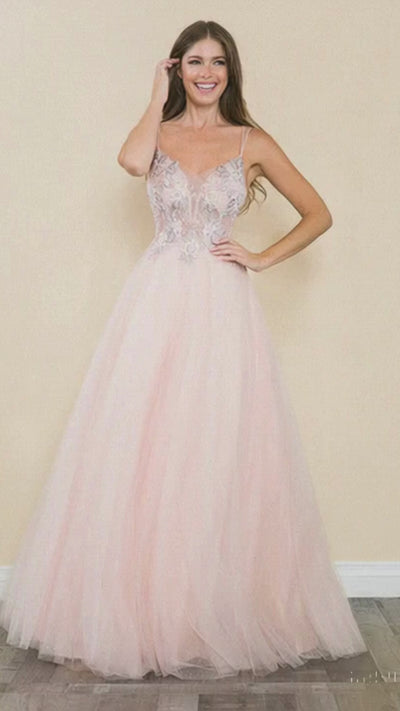 Glitter Tulle A-Line Gown with Floral Lace Appliqué Bodice and Double Spaghetti Straps Prom Dress By Lenovia 8182
