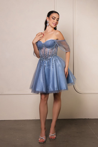 Graduation Dress Off Shoulder Sleeveless A-Line By May Queen MQ2147