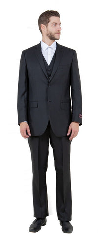 Groomsmen - Men's Two Button Vested Textured Solid Business Suit in Black