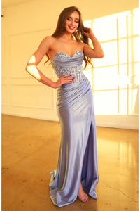 High Couture HC1021 Long Slit Formal Pleated Prom Dress