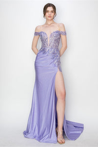 High Couture MJ1018 Prom Long Formal Glitter Applique Dress