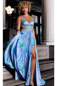 Jovani 38722 - Elegant Print Detail Satin Sheath Gown Sale price$400.00