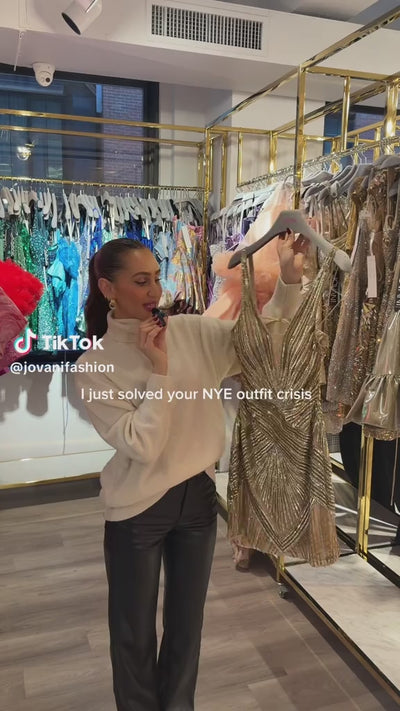 Questions about Jovani 46715 - Deep V-Neck Paillettes Mini Dress, sizing, or delivery? We’re just an email away.