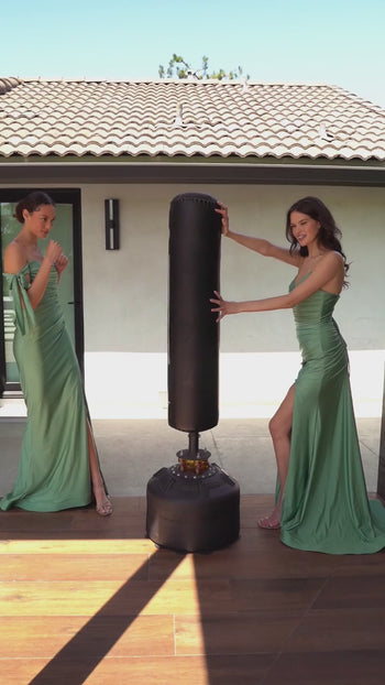 A concealed back zipper ensures a smooth finish, and the soft lining keeps the gown comfortable against the skin. The stretch fabric not only provides flexibility but also maintains its shape throughout the day and night, ensuring you look polished from start to finish.
