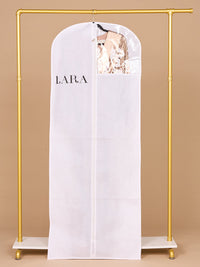High quality Lara branded garment bag to protect your new gown! Wrap your beautiful gowns in luxury and security with the premium Lara Garment Bag. Let its high-quality materials shield your dresses from harm while you travel.