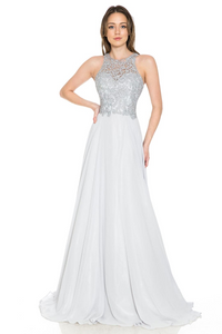 Lenovia 8169 Sleeveless Halter Long Embroidered Formal Gown