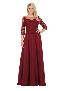 Poly USA 7598 Long Chiffon Dress with Sheer Lace Sleeves