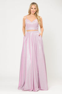 Poly USA 8676 Long Iridescent Glitter Two Piece Dress