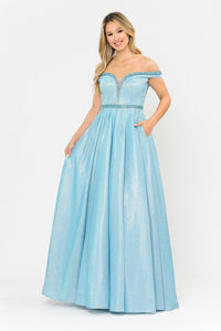Poly USA 8664 Long Metallic Glitter Off Shoulder Dress Sale price$180.00 Regular price$299.00