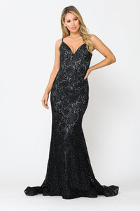 Poly USA 8590 Long Sleeveless Beaded Lace Mermaid Dress