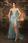 May Queen MQ2158 Off-Shoulder Glitter Gown with High Slit Formal Prom & Red-Carpet Dress-New Collection
