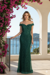 Command attention at your next formal event with a gorgeous off-shoulder trumpet gown. Perfect for galas, proms, weddings, and red carpet appearances, this gown’s glittering finish and bold silhouette ensure you’ll leave a lasting impression. The deep hunter green hue offers a regal, modern alternative to traditional formalwear colors, flattering a variety of skin tones and adding depth to your overall look.