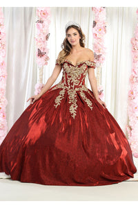 Plus Size Ball Gown in Burgundy/Gold | Formal Quinceanera Dress by LK155
