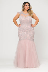 Poly USA W1084 Plus Size Embroidered Mermaid Dress
