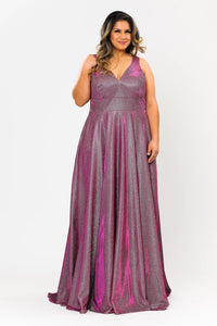 • Plus Size Long Metallic Glitter V-Neck Dress by Poly USA W1036