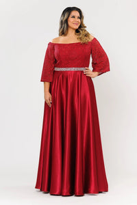 Plus Size Long Off Shoulder Dress with Sleeves by Poly USA W1008-Long Formal Dresses-ABC Fashion