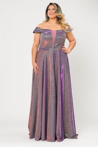 Plus Size Long Off Shoulder Glitter Dress by Poly USA W1060-Long Formal Dresses-ABC Fashion