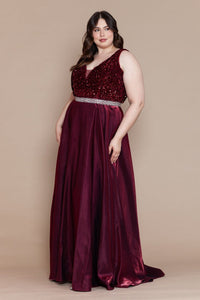 Poly USA W1006 Plus Size Long Sequin Bodice Satin Dress
