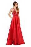 POLY USA 8316 Floral Lace Halter Prom Mikado A-line Evening Gown