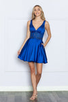 These affordable bridesmaid dresses are perfect for a wedding Poly USA 9200 Sleeveless A-line Cocktail Dress. Get ready to make a statement in this cocktail dress BY Poly USA 9200 that seamlessly blends sophistication with functionality, ensuring you look and feel your best throughout the event. Showcases a harmonious blend of intricate details, making you the center of attention. Adorned with shimmering rhinestones. The lace midriff adds a touch of romantic allure, enhancing the dress's visual appeal. Designed with your convenience in mind, the side pockets provide a practical touch, allowing you to keep your essentials close at hand without compromising on style. With a corset boned bodice, this dress offers a flattering fit that accentuates your curves in all the right places.